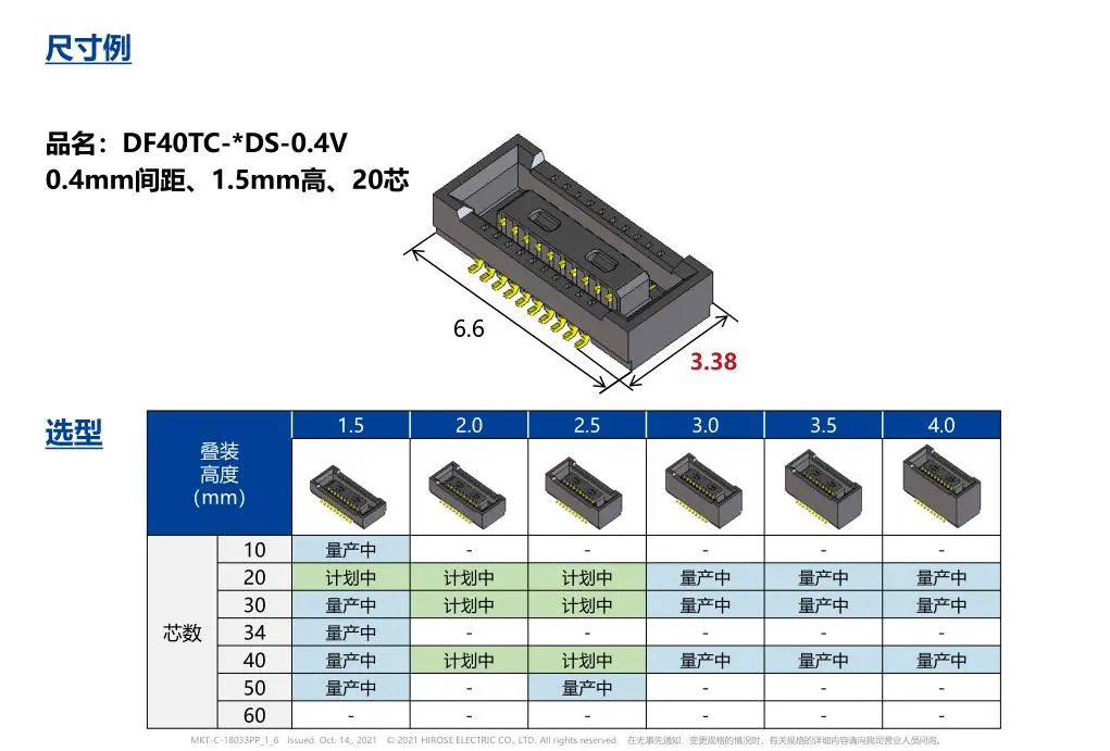 The characteristics of 1. 125℃ heat resistant and corresponding to vehicle specifications 2. 0.4mm spacing and 3.38mm depth Small board to FPC socket 3. Rich core number and high selection 4. Corresponding to PCI Express 4.0(16Gbps) transmission 5. Suitable for high heat resistant terminal design and material